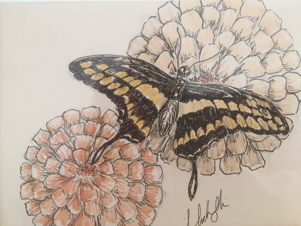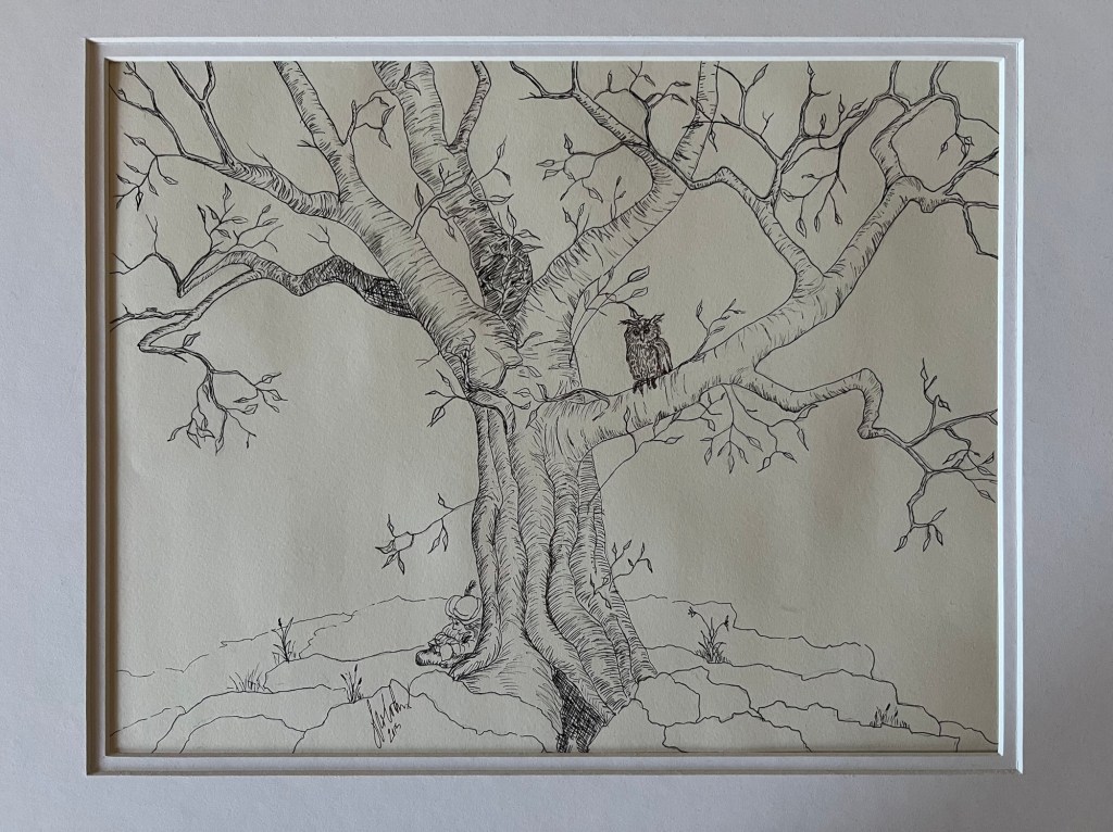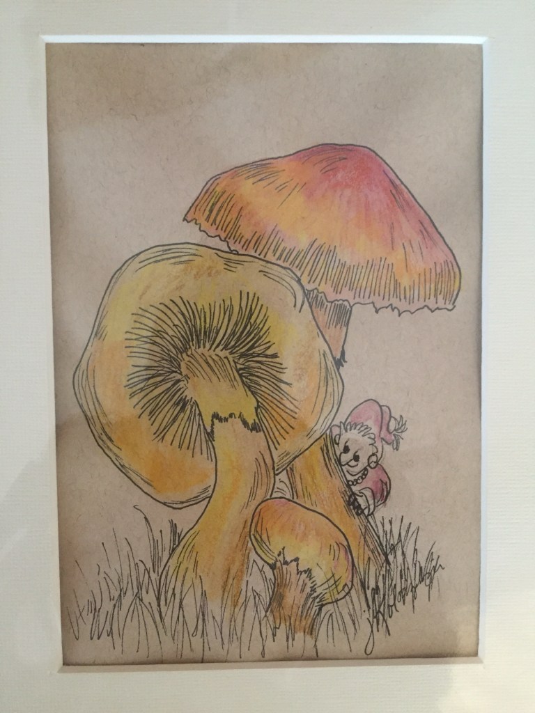 Happiness is, watercolor, pen and ink, 6/6”Gnome woman, pencil, 5/7”Picking flowers, pen and ink, 6/8”Peek a boo, water color, pen, and ink, 5/7”Texture in Nature, colored pencil, pen and ink, 5/7”Spring, watercolor, 11/14”Summer Reading, pen and ink, 11/13”